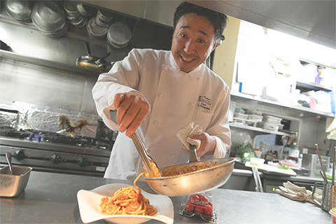 夏に冷製パスタを提供したいと思っても、他のフルーツトマトは美味しさが安定しないことが多くてお客様にお出しできないことがあったけれども、OSMICトマトは通年で味や数量が安定しているので、夏に冷たいトマトパスタを提供できるのはありがたいです。