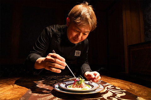 香川産のフレッシュキャビアと、厳選した旬の食材を用いたフランス料理を、希少なシャンパーニュやワインと共に楽しんでいただける、フレンチレストラン&バー。